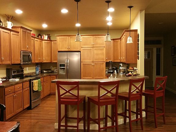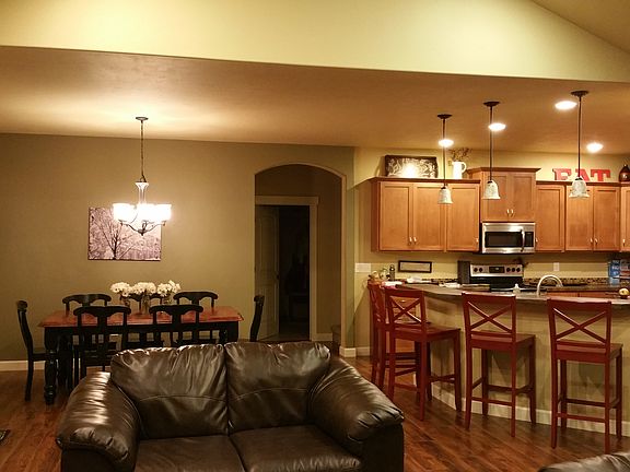 Very open floor plan Great for entertaining! Large bedrooms with closets. 4 bed 2 bath on main floor. Master includes a large enclosed steam shower with radio/t.v. Kitchen has cement countertops with plenty of counter space and cupboards. There is a hidden walk-in pantry with a freezer. Upstairs has a bonus room, bath and bedroom. 3 car garage with large front, back and side yards. Please call with questions or if you want to see it!
