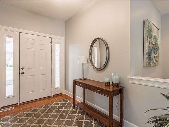 - Ceiling Fan(s), Cathedral Ceiling(s), Entrance Foyer, Eat-in Kitchen, Great Room, Kitchen Island, Living/Dining Room, Pantry, Quartz Counters, Window Treatments, Bedroom on Main Level, Main Level Primary, Primary Suite, Programmable Thermostat