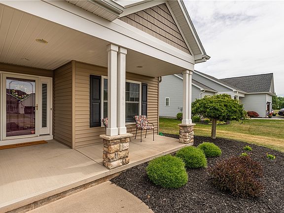 THIS IS YOUR CHANCE TO LIVE IN HIGHLY SOUGHT AFTER WEST WHITTIER ESTATES! THIS DELIGHTFUL VINYL & STONE 2 BRM 2 FULL BATH RANCH PATIO HOME IS SURE TO PLEASE YOUR FUSSIEST BUYERS. STUNNING STONE GAS FIREPLACE IN ELEGANT GRT RM GREETS YOU AS YOU ENTER THE OPEN LAYOUT. 9" CELINGS THROUGHOUT LENDS TO THE SPACIOUS FEELING. TRANSOME WINDOWS AFFORD THAT NATURAL LIGHT THAT WE ALL CRAVE. KITCHEN HAS AN ABUNDANCE OF MAPLE CABINETRY & COUNTERSPACE SPORTING BEAUTIFUL QUARTZ COUNTER TOPS PLUS A BONUS ISLAND! ALL APPLIANCES STAY & PLENTY OF RECESSSED LIGHTING. FIRST FLOOR LAUNDRY MAKES THE CHORE EASY. PRIMARY SUITE HAS SIZABLE WALKIN CLOSET. DOUBLE VANITY BATH IS ALWAYS A PLUS. ENJOY A BREEZE ON YOUR FRONT PORCH OR RELAX AT THE END OF THE DAY IN YOUR PRIVATE FULLY FENCED MINI PARADISE COMPLETE WITH STONE PATIO AND FOUNTAIN. THIS HOME IS LOCATED IN THE SPENCERPORT SCHOOL DISTRICT & JUST MINUTES TO YOUR FAVORITE AMENITIES. WHAT A RARE OPPORTUNITY - DON'T MISS IT! DELAYED NEGOTIATIONS TO TAKE PLACE ON TUES 7/2 @ NOON OPEN SUN 6/30 2-4