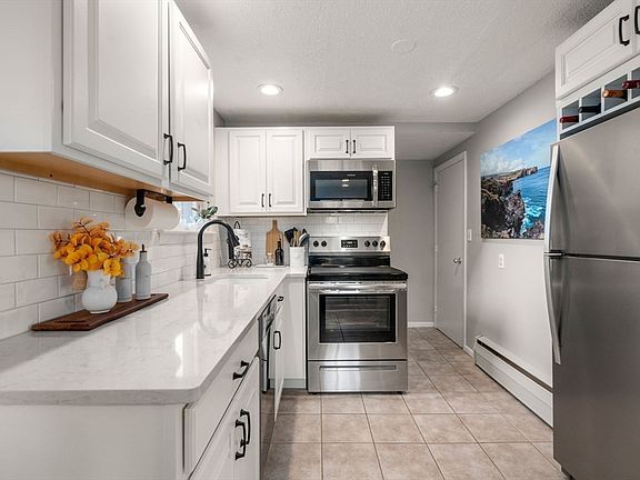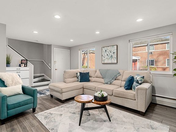 Welcome to this beautifully renovated 2-bed, 1.5-bath townhome in a quiet, landscaped community. Thoughtfully updated throughout, it blends comfort, style & convenience. The sunlit kitchen features white cabinetry, quartz countertops, subway tile backsplash & stainless appliances. A charming eat-in area overlooks the manicured courtyard creating a peaceful spot for morning coffee or casual dining. The inviting living rm offers LVT flooring, recessed lighting & large windows. Upstairs, the spacious primary bedrm includes a custom closet system. A full bath boasts a marble-topped vanity & classic tilework, while the refreshed 1/2 bath on the 1st flr adds convenience for your guests. The lower level offers storage, laundry & future expansion potential. Deeded parking, a private entrance, shared green space & a community pool—currently under renovation—complete the package. Located near shops, dining & commuter routes, this move-in ready home offers ease of living in a peaceful setting!