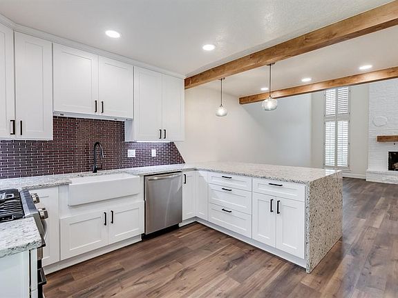 Unbelievable remodel in Brookhaven Square! New gorgeous flooring. The property features two bedrooms: one downstairs with a full bath, and the master bedroom upstairs with another full bath. The downstairs bedroom can also be used as a study. Everything has been addressed. Enjoy plenty of closet space, book storage, a new deck off the master bedroom upstairs, as well as a concrete back patio. The living/dining area is combined, with an eating area in the beautiful new chef's kitchen, a fireplace, and a wet bar in the living room. Additional features include a two-car garage and a quiet cul-de-sac with extra parking in front. Fast access to I-35 and OU stadium. Just move in, unpack, and enjoy! Brand new washer/dryer and patio furniture to stay with home.