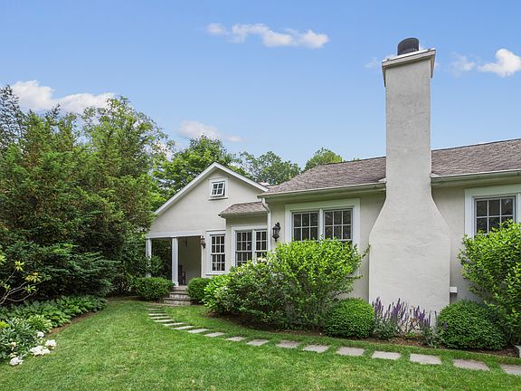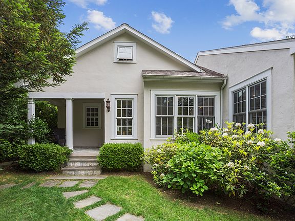 In town living at it's best. A unique opportunity to own one of Rowayton's original seaside homes with a private yard and heated pool. This charming 1920 Stucco cottage with a professionally landscaped yard boasts mature plantings and trees, offering privacy and year-round greenery. 3 bedroom, 2 bath home with almost entirely one floor living. The sun filled great room/kitchen with vaulted ceilings is ideal for entertaining with front sitting porch, back patio, beautiful pool, attached garden shed, fully fenced backyard, attached 2-car garage & additional stone driveway.