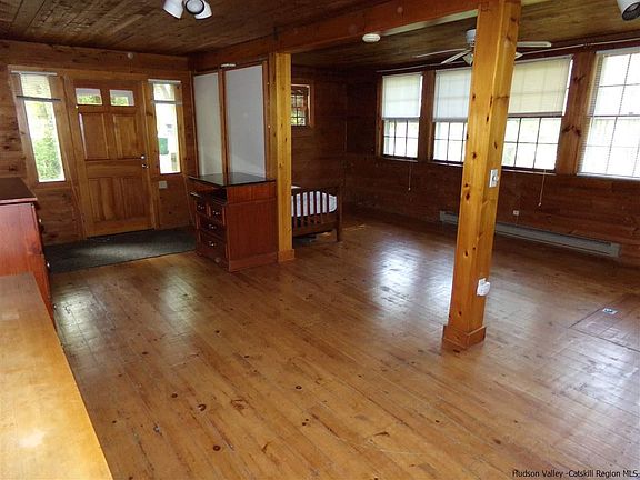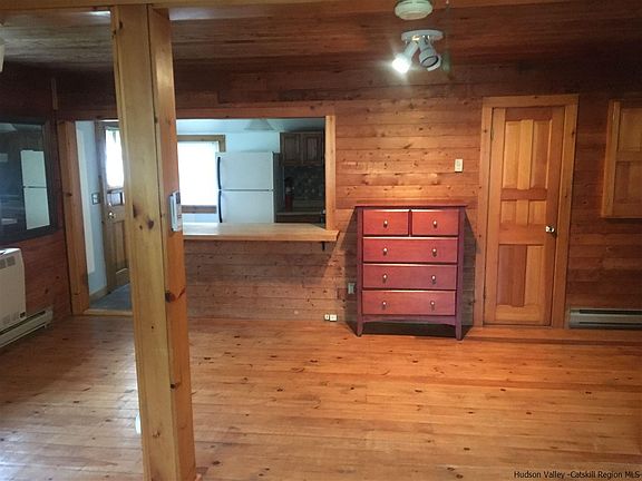 Clean large cabin open concept bedroom/living room with separate kitchen with eat in counter on private road with private yard, creekside, walking distance to Village. Total 650 square feet. Central A/C. Landlord pays for garbage and plowing. Two spaces for parking. Large walk in closet. Choice of electric or propane fired split unit heat.