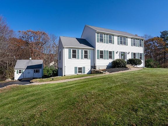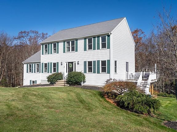 Privacy abounds in this 4 Bedroom colonial located in the desirable Mendon neighborhood, Wood Estates. Built in 1997 and renovated since, this home sits on 2.3 acres and consists of 2256 SqFt with a two tier mahogany deck & brand new side deck overlooking the large yard. The 1st floor features a spacious two story foyer with a formal dining room to the left & office or optional 1st floor bedroom to the right PLUS full bath/laundry located in the side hall. The extra large kitchen boasts an abundance of cabinetry with granite counters & eating area with built-in hutch & sliding door access to the rear deck. The sun filled vaulted family room adds additional space for relaxation with it's wood burning fireplace and carpeted floor. The second story consists of three bedrooms and 2 full bathrooms, including a master suite with a private bath & walk-in closet. Plenty of room in the unfinished basement for future living area expansion! Open House Sat and Sun 12pm-2pm