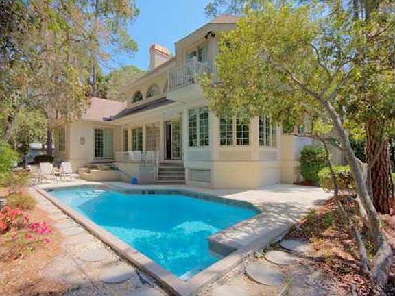 Wonderful treasure, recent charming renovation, 4th row with easy access to beach at sea pines, wonderful pool and tub, 4 bedrooms, 4.5 bath, master suite in main, den- office that serves as 5 th bedroom, fully furnished. Spacious, bright living with souring ceilings , bright eat- in large kitchen, 2 car cover garage, beautiful garden