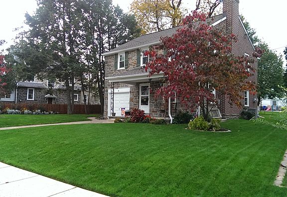 3 BR, 1.5 bath, finished basement. Landscaped, new paver walkway, all windows replaced, 30 yr roof (2007), converted to gas heat, central air, updated kitchen with slate floor, quartz counters, glass tile backsplash, stainless appliances and remodeled powder room off kitchen. Hardwood floors refinished in 2012. Crown molding in LR and DR. This home is solid stone and brick construction with one car garage. Front door (storm and main) updated. Attic well insulated. Good size rear lot with mature cherry trees and other old growth.