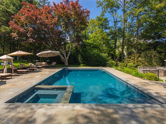 Sensational New Build in 2013 on coveted Westport cul-de-sac w/heated Sale-Water Gunite Pool & Hot Spa plus a fab outdoor kitchen. Private backyard door opens to Wakeman Town Farm, Bedford Middle School and Staples High School Entire yard has been completely fenced in by 12+ foot trees for privacy. Picture yourselves sitting in the hot tub and/or pool completely secluded. A private poolside entry way to the house has been added for your convenience. Cozy up to the wrap around wood burning fire pit to enjoy after a day in the pool & grilling smores There's a newer outdoor built-in Linx BBQ grill plus side burners & refrigerator leaving the indoor kitchen spotless