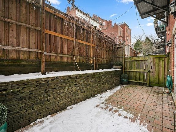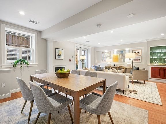 Rare three bedroom & three full bath garden duplex home located on a beautiful South End square just steps to Toro and Flour Bakery. Private entrance leads to a large foyer/mudroom ideal for bikes and strollers. The primary bedroom is en-suite with large double closets and all tile bath. The spacious guest room is also en-suite with generous closets. Open concept kitchen dining and living level with gas fireplace and wet-bar. French doors lead to a private patio and direct access deeded parking. The kitchen has gas cooking, all stainless appliances, stone countertops and great storage. The third en-suite bedroom makes a great home office, nursery or guest room. Over 2,000 square feet, deeded parking, professional management and central a/c complete this home.