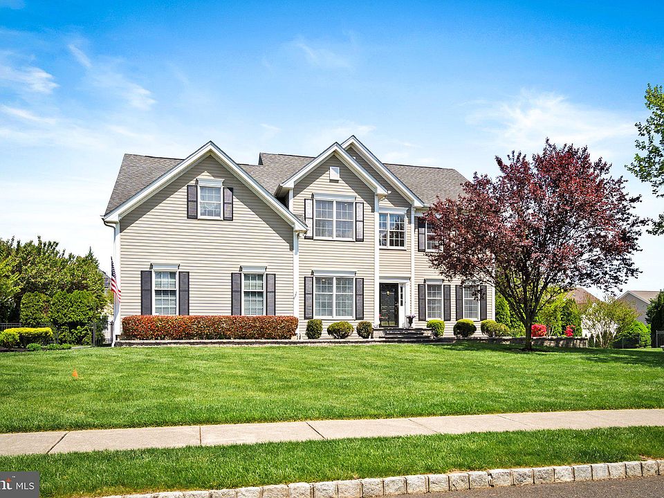 Welcome to the Columbia Model, a stunning Toll Brother’s built residence offering a harmonious blend of comfort, style, and functionality. With 4 bedrooms, 3.5 baths, and an expansive 3,200 sq ft of living space, plus another 900 sq ft in the finished basement, this home provides ample room for both relaxation and entertainment As you approach, you're greeted by a two-car side entry garage and beautifully landscaped frontage. Step inside to discover a home that's been meticulously upgraded and maintained. The master bath has been recently renovated, boasting modern touches and luxurious finishes, ensuring a spa-like retreat within your own home. You will also enjoy sitting by the recently upgraded, stately wood-burning fireplace in the family room with family and friends. Entertain guests with ease in the finished basement, complete with a wet bar, maple cabinetry, and granite countertops. There's even an exercise room, perfect for maintaining a healthy lifestyle without leaving the comfort of home. The kitchen is a chef's dream, equipped with GE Profile Appliances, cherry wood cabinetry and featuring plenty of counter space and storage. Step outside to enjoy the custom pavers both in the front and rear of the property, adding a touch of elegance to your outdoor space. The fenced-in yard provides privacy and security for pets and children alike. Whether working from home or in need a quiet space to read, the custom-built library system in the study offers the perfect setting for both work or relaxation. You can also rest easy without worrying about power outages knowing that there is a whole-house Kohler standby generator to provide for your comfort and safety. Maintaining your lawn is a breeze with the lawn irrigation system, ensuring lush greenery all year round. And finally, the driveway has recently been replaced and expanded, providing ample parking space for guests. Don't miss the opportunity to make this exquisite property your new home! The location offers easy access to Routes 206, 130, 295, and the New Jersey Turnpike and is just a 15-minute drive to the Hamilton train station - providing direct access to cities such as Princeton, Philadelphia, and 1 hour to New York City.