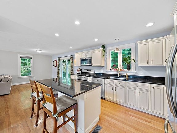 Just a few miles from Rexhame, Humarock and the South river, but also less than 3 mi from the hway. This colonial is only ~5 years young and shows like new. The first floor is all beautiful hardwood floors with soothing paint colors and attention to workmanship. The open concept kitchen has eye catching white soft close cabinets with contrasting dark granite countertop and island. Appliances are S/S and feature gas cooking. There is a large private dining room, but the eat in area can also fit a full size table. This area flows right in to the living room that has ample room for seating. The second floor has a main bedroom and 2 others with cozy wall to wall carpet. The upstairs baths have tile floors as well as tile shower/tub enclosures. Insulated vinyl windows and custom up/down blinds throughout. Full basement has high ceilings. The backyard is very private and has a bevy of wildlife! There is a Tech Trex deck that leads down to an expansive Uni-lock paver patio