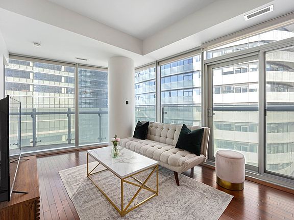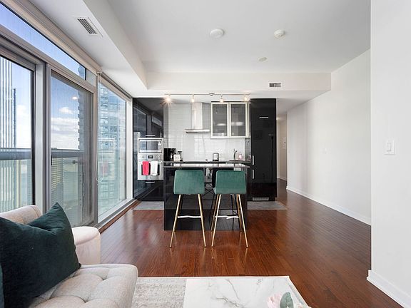 Welcome to your luxurious urban retreat in the heart of Toronto! This stylish 2-bedroom, 1.5-bathroom condo offers the perfect blend of comfort and convenience, making it an ideal home away from home for business travelers, couples, families, or groups. Located where the Entertainment District, Waterfront, and Financial District converge, you'll be just steps away from the city's top attractions, renowned dining, cultural spots, and major transit hubs. Prime Location: Situated at 12 York Street, this condo is in one of the most coveted spots in downtown Toronto. Whether you're here for business or leisure, you'll be at the epicenter of it all. Enjoy easy access to the CN Tower, Ripley's Aquarium, Scotiabank Arena, Harbourfront, and a wide range of dining, shopping, and entertainment options. The PATH network, Union Station, and the Island Airport are also nearby, ensuring seamless travel throughout the city. Stunning City Views & Balcony: Enjoy panoramic views of Toronto's bustling skyline from your private balcony. Whether you're sipping your morning coffee or winding down in the evening, the city lights and architecture provide a beautiful backdrop to your stay. Spacious & Comfortable Interiors: This thoughtfully designed condo features a modern open-concept living space with high ceilings, sleek finishes, and large windows that flood the rooms with natural light. The living area is furnished with a comfortable sofa and an entertainment unit with access to Netflix, Prime Video, and high-speed Wi-Fi perfect for unwinding after a busy day. Fully Equipped Kitchen: The kitchen is fully stocked with all the amenities you need to cook and dine in style. It features contemporary appliances, a spacious countertop, and all the essentials to prepare a meal, from pots and pans to dishes and utensils. Whether you're preparing a quick breakfast or hosting a small dinner, you'll find everything you need right here. Bedrooms & Comfort: The condo includes two cozy bedrooms, both furnished with comfortable queen-size beds and large windows that provide stunning city views. An additional sofa bed in the living room allows for up to six guests to stay comfortably, making this home perfect for groups or families. Rest assured, you'll find high-quality linens, duvets, and fresh towels provided for everyone. In-Unit Convenience: This unit is fully equipped with an ensuite washer and dryer, so you can pack light and do laundry at your convenience. With the added perks of high-speed Wi-Fi, Netflix, and Prime Video access, you'll feel right at home during your stay. Building Amenities for 30 days or longer rentals As part of your stay, you'll have access to the building's impressive amenities: Indoor Pool and Sauna to unwind after a busy day. State-of-the-Art Gym for those who like to stay active while traveling. Mezzanine-Level access to fitness and wellness facilities. Parking: Parking for one vehicle is included in your stay. Additional parking is available in a secure underground lot across the street, with rates ranging from $20-$30 per day. Perfect for Short or Extended Stays: This condo is available for a minimum stay of one month, making it ideal for extended business trips, relocation, or a longer vacation in Toronto. If you're looking to experience the city for a longer duration, this condo offers all the comforts of home in an unbeatable location. This property is available for rent through May 2025 at the current rates. For summer bookings starting in June, please inquire for updated rates, as they are expected to be higher during the peak season. Whether you're staying for one month or several, we look forward to hosting you at this amazing downtown retreat! Book your stay today and experience the best of Toronto!
