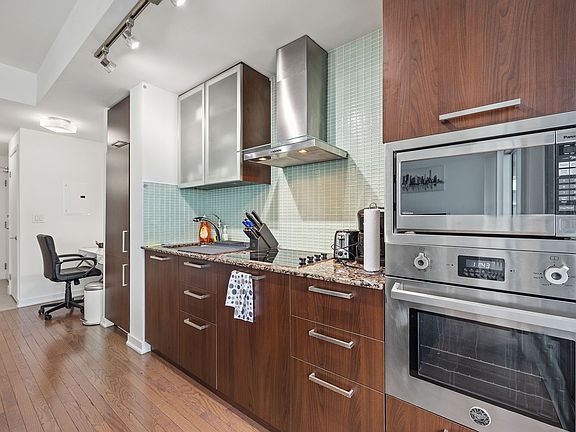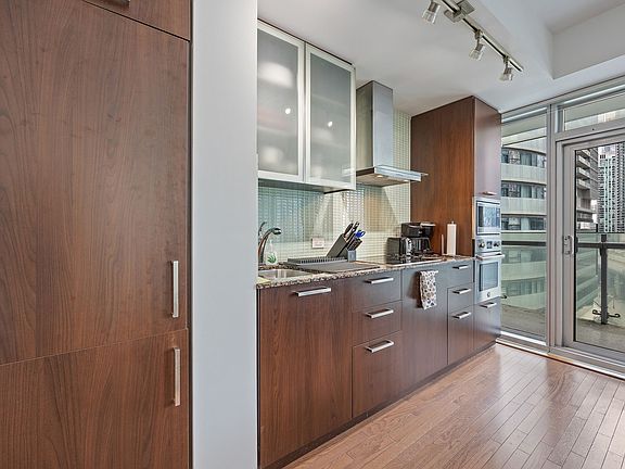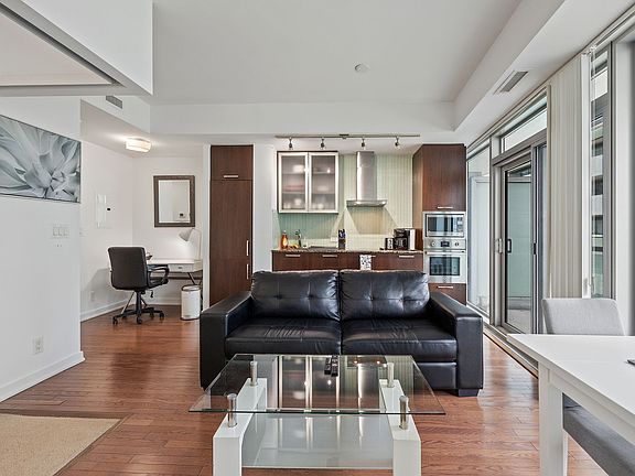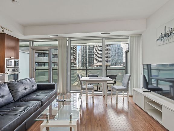 Welcome to your stylish urban retreat in one of Toronto's most desirable neighbourhoods! This sleek and modern 1-bedroom, 1-bathroom condo is perfect for professionals, couples, or anyone looking to enjoy a short or extended stay in the heart of the city. Located where the Entertainment District, Waterfront, and Financial District converge, this condo offers both convenience and comfort, with some of Toronto's top attractions, dining, and transit options just steps away. Prime Location in the Heart of Toronto 12 York Street places you at the centre of Toronto's vibrant downtown scene. Whether you're in town for work or play, you'll find the best of the city within walking distance. The Rogers Centre, Scotiabank Arena, Union Station, and the Convention Centre are just a 3-minute walk away. A Whole Foods-style grocery store, LCBO, several banks, and countless top-tier restaurants and cafes are all within a short stroll. This location provides unmatched convenience and accessibility, making it the ideal place to stay for both business and leisure. Cozy & Contemporary Interiors This 1-bedroom suite is designed with modern finishes and hardwood flooring throughout, creating a warm and inviting atmosphere. The open-concept layout ensures that the space feels airy and spacious, while large windows provide plenty of natural light and fantastic city views. Relax in the cozy living room, complete with a 55" Samsung QLED TV, perfect for winding down after a day of sightseeing or meetings. Fully Equipped Kitchen & Dining Area The kitchen is fully equipped with everything you need to prepare simple meals or entertain. It includes contemporary appliances, plenty of counter space, and all the essential cookware and utensils. Whether you prefer to dine in at the dining table or enjoy your morning coffee on the balcony, you'll appreciate the convenience of having everything you need at your fingertips. Perfect for Work & Leisure For those travelling for work, this condo offers a designated workspace complete with a desk, ergonomic chair, and high-speed internet, making it easy to stay productive while enjoying your stay in Toronto. After a day of meetings, you can easily transition into relaxation mode with the comfy living area or retreat to the peaceful bedroom. Bedroom & Comfort The bedroom features a queen-sized bed with soft cotton linens for your comfort. The suite also includes a couch in the living area for additional sleeping space, making it ideal for up to 3 guests. Soft linens, towels, and all the essentials are provided to ensure a comfortable stay. This condo includes a full-sized washer and dryer, so you can easily take care of laundry during your stay. For additional convenience, Wi-Fi, Netflix, and Prime Video access are also available for your enjoyment. Building Amenities for 30 days or longer rentals As part of your stay, you'll have access to the building's impressive amenities: Indoor Pool and Sauna to unwind after a busy day. State-of-the-Art Gym for those who like to stay active while traveling. Mezzanine-Level access to fitness and wellness facilities. Parking Please note that no parking is included with the unit. However, there are several secure underground paid parking options nearby, including: - 55 / 65 Bremner (1-minute walk) - 208 Queens Quay (4-minute walk) Parking rates are typically $20 $30 CAD per day, which is standard for the downtown core. This beautiful condo is available for a minimum of one month, and we welcome you to stay through May 2025. For summer bookings starting June 2025, please inquire about updated rates, as they are expected to be higher during the peak season. Whether you're in town for business, a weekend getaway, or an extended stay, this condo provides a perfect base to experience all that Toronto has to offer.