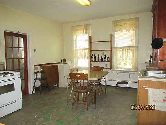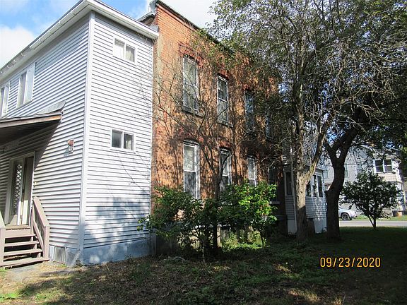 All brick 2 family unit that has been maintained but not lived in for several years. Both units have 2 bedrooms but kitchens are HUGE so could convert DR/or LR to 3rd bedroom if needed. There are enclosed porches front and back on each unit and a wheelchair ramp off the back. Unit 1 has HW baseboard heat, currently there is no heating system for upper unit (but chimney is intact for adding acceptable space heaters.) There is a 3 car garage and small yard with apple trees. Basement is unfinished. Owner prefers CASH "as is" sale with buyer doing clean out.