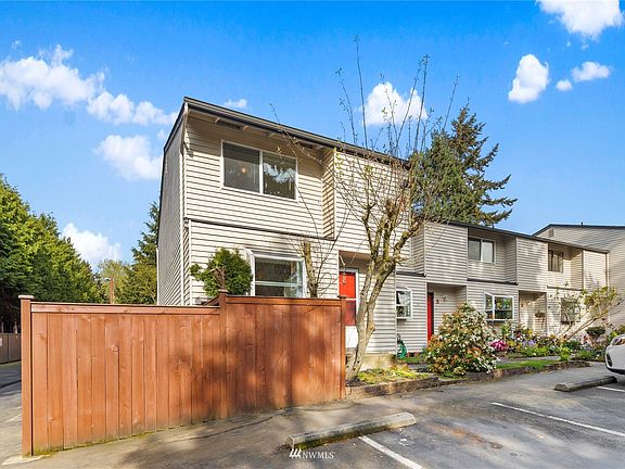 Everything you are looking for in a townhouse – fantastic location, inviting floor plan, quiet community, end unit and so much more! Main floor offers kitchen with plenty of cupboard space, pass-through and bay window. Convenient powder room for guests, open living room with wood-burning fireplace and private deck – perfect to relax & unwind with greenspace. Upper floor offers a spacious master with outside deck (ideal to enjoy your morning coffee), large bathroom, 2nd bedroom with walk-in closet & laundry. Huge storage closet & 2 parking spots. Close to schools, shopping, grocery, trails, parks etc. With brand new carpet & paint, this place is move-in ready and a fantastic place to call home!