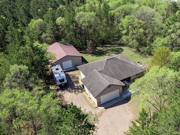 Exceptionally cared for, 2002-built one level home on 2.3 wooded acres. Beautiful cul-de-sac location less than one mile from town. Bright open kitchen with vaulted ceilings and walk in pantry closet. Living room has vaulted ceilings, fireplace and beautiful views. Primary bedroom has walk in closet and private bath with jetted tub. Two additional bedrooms, full bath and laundry room on main floor. Accommodate large gatherings in the huge lower-level family room. The finished lower level includes 2 more bedrooms, a ¾ bath, and a large storage room. Great wooded views from the deck and yard. There is also a relaxing covered front porch. The 30x40 pole shed has concrete floor and 10-foot interior clearance. The access ramp to the front door can remain or seller will remove if buyer prefers. A large 5BR, 3 BA home with pole building on wooded acreage close to town-don’t miss out on this one!