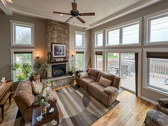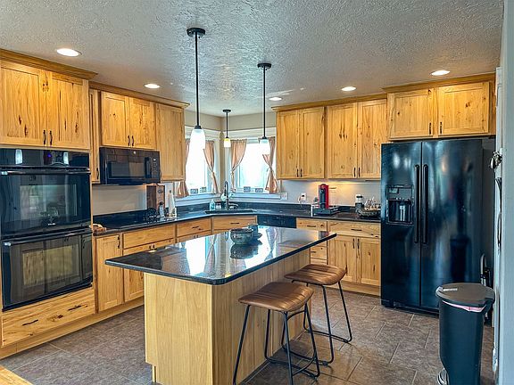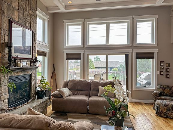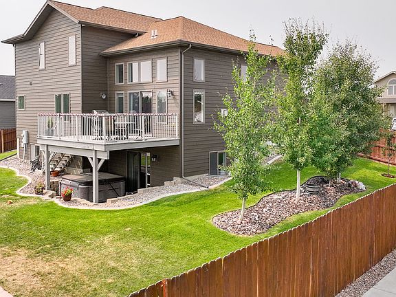 Welcome home to this desirable 3200' Skyline showplace on a generously sized corner lot. You'll love the abundance of upgrades throughout this like-new house. The kitchen offers high-end knotted hickory cabinets, appliances, and granite on the counters and island. The main living room has 13' coffered ceilings and a handsome floor-to-ceiling gas, stone fireplace. The floorplan is slick with doors leading off main floor to the Trex deck and doors from the daylight basement exiting to a covered porch which makes year-round, outdoor living a reality! Each bathroom has granite countertops and knotted hickory cabinets. The lower level is all egress and offers a large recreation room, a full bar space that could easily be converted to a kitchenette, a huge bedroom with a huge closet, storage and a full bathroom. Consider it its own separate living quarters! The backyard is fenced with mature landscaping, trees and RV parking. Call Lynn Kenyon at 406-770-0013 or your real estate professional. The attached garage has three separate bays with one being longer than the other two and inviting a work space. Garage is insulated, plumbed for a sink and plumbed for a heating unit and includes built-in shelving. Home has been wired for sound. Floor coverings are genuine hardwood, tile and carpet. Newer top-quality engineered wood siding and roof. It is a blank, neutral canvas awaiting your design ideas. Millwork is good-looking and abundant on every floor. Main bedroom with walk-in closet and ensuite bathroom with double sinks and walk-in tile shower on upper level. Also, two more bedrooms and a full bath on the upper level. The main floor has a flex space with a closet, so could act as the fifth bedroom, music room or den. Yard has sprinkler system. Kitchen has double ovens and includes a combination of Electrolux and Miele appliances.