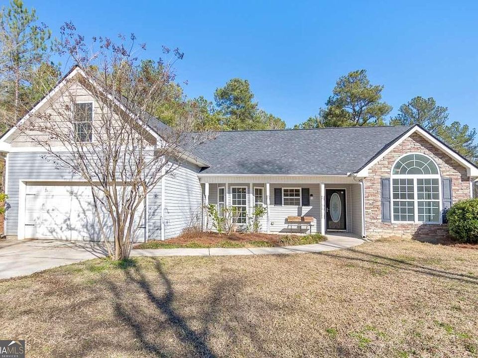 Welcome to this beautifully renovated 4 bed / 2 bath stepless ranch home, where modern comfort meets timeless charm! Updates include a new roof, new HVAC, paint, flooring, lighting, fans, faucets, and insulated vinyl windows. As you approach the home, you'll be greeted by an inviting rocking chair front porch that leads to the sun-filled fireside living room boasting soaring ceilings. The kitchen is a delight with new stainless steel appliances and an open design that allows seamless views to the living room, making it perfect for entertaining friends and family. Enjoy the low-maintenance and stylish luxury vinyl flooring as well as the fresh new carpet. Retreat to the primary bedroom that features vaulted ceilings with an attached en-suite that offers a double vanity, a soaking tub, a separate shower, and his and hers closets. Step outside to the spacious and private backyard - an ideal space for relaxation and entertainment. Situated on an acre, this residence provides both space and serenity. Located in a great school district and conveniently located just minutes away from High Falls State Park, Indian Springs State Park, and the Dauset Trails Nature Center.