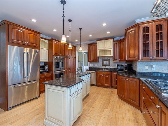 Beautiful Custom Built Colonial in a great neighborhood! Enter to a gorgeous open foyer. The eat-in kitchen has stainless appliances, Viking 6 burner stove with Bosch exhaust system. Viking dbl wall oven and DW. Lots of cabinets and center island with separate sink. The family room has a gas fireplace and looks over the back lot along with the deck and gazebo. Formal dining room with coifed ceiling and chair rail opens to the serene living room. Mudroom and half bath complete the first floor. The second floor boasts of a wonderful main bedroom with double walk-in closets and separate sitting room with gas fireplace. Huge main bath with jacuzzi tub, double vanity sinks and tile shower. Two additional bedrooms share a full bath with tub and granite counter. The fourth bedroom has a walk-in closet and full bath with tub and granite counter. Laundry room has a sink and built-in ironing board. Walk-out basement with double doors is framed for 9 foot ceilings with roughed in plumbing.