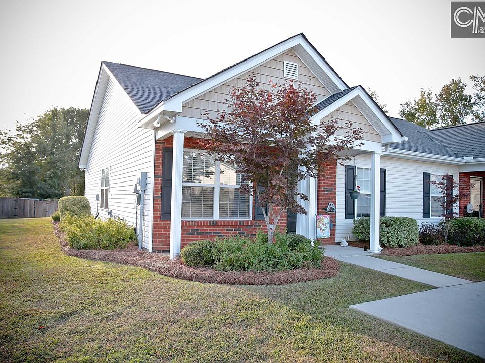 2 bedroom patio home located in 55+ community. Open floorplan with vaulted ceilings, large master with handicap accessible walk-in shower and nice walk-in closet, gas fireplace, convenient location. Upgrades include laminate hardwood flooring, black appliances, corner lot next door to the clubhouse and a screened in patio. Neighborhood features a fantastic community center with event space, workout room, deck with grill and lots of community events!