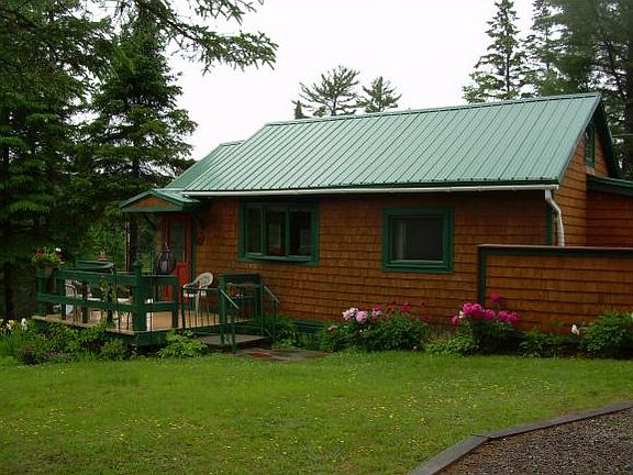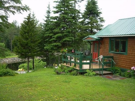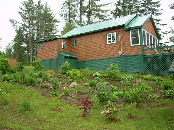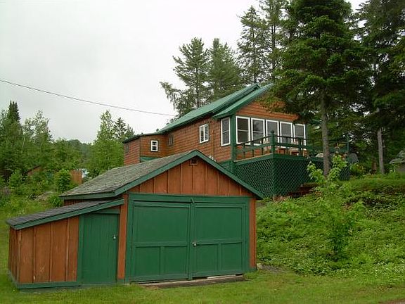 Sit out on your deck and listen to the water flowing over the dam and watch the boats come and go. This cozy cabin has undergone numerous renovations over the past 5 years. There is a new metal roof, new windows, new Rinnai heating unit, a new drilled well, and more. This cabin sleeps 7 in 3 sleeping areas and a pull out sofa. Park the snowmobiles, boat or ATV's in the two garages. The large beautifully landscaped lot offers plenty of room to entertain and park. The town owned shoreline below offers a place to fish, swim and boat. Akers pond is known to be home to Loons, Rainbow Trout, and Bald Eagle sightings. Come see your piece of paradise.