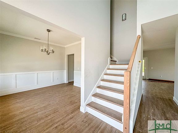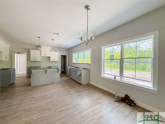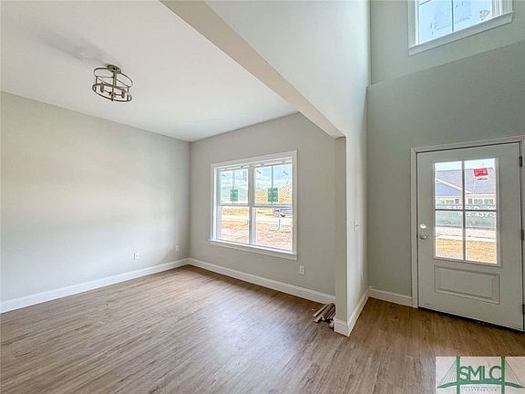 Monroe plan in Midway, GA, minutes to I-95- short commutes to Savannah & Brunswick! Spacious 4-bedroom home with gorgeous finishes. Formal living & dining room flank to the 2-story foyer entry. A large family room with fireplace leads to covered patio in the sodded & irrigated backyard. Also on the main floor is the impressive kitchen complete with breakfast area & walk-in pantry. Two-tone cabinetry with quartz counters & tile backsplash complete the kitchen. Plank treads along the staircase take you upstairs to 3 bedrooms, a hall bath, laundry room & primary suite. Enter the primary suite to find a vaulted ceiling with fan plus a large sitting area. Two large walk-in closets are also included in the primary suite, 1 accessed from the bedroom, the other from the private bath. In the private bath is tile flooring, quartz vanity, tile shower with pan insert & a soaking tub. Estimated completion June 2024. Exterior photo does not represent the actual home or selections for this listing.