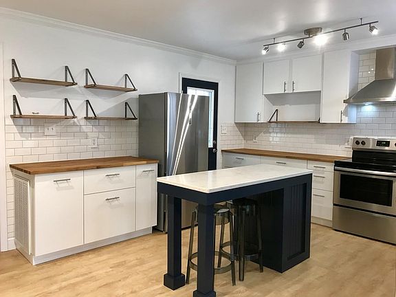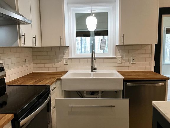 Completely updated with modern appliances and fixtures. Brand new kitchen has stainless steel appliances, soft close cabinets, kitchen island, butcher block countertops, double farmhouse sink, subway tile. Whole house has new hardwearing 9 inch wide plank flooring. New vanities in bathrooms. Attractive modern blue painted interior doors. Sunroom added in 2015/16. Water heater replaced in 2015. Cathedral ceilings in living/master. Almost an acre lot in a quiet cul-de-sac with a private fenced in yard.