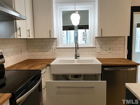 Completely updated with modern appliances and fixtures. Brand new kitchen has stainless steel appliances, soft close cabinets, kitchen island, butcher block countertops, double farmhouse sink, subway tile. Whole house has new hardwearing 9 inch wide plank flooring. New vanities in bathrooms. Attractive modern blue painted interior doors. Sunroom added in 2015/16. Water heater replaced in 2015. Cathedral ceilings in living/master. Almost an acre lot in a quiet cul-de-sac with a private fenced in yard.