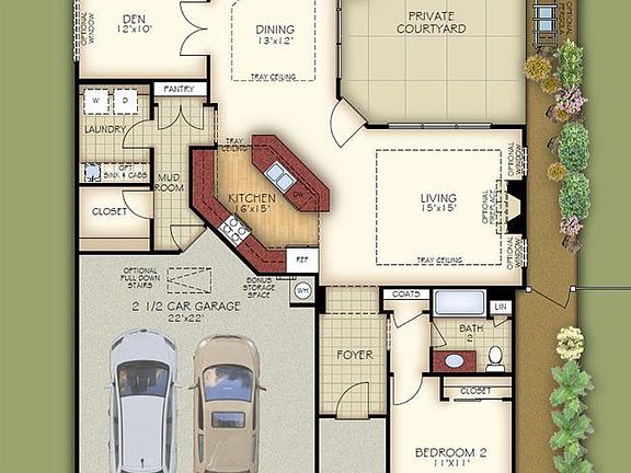 BRIER CREEKS NEWEST MAINTENANCE FREE COMMUNITY! New Maintenance Free RANCH Homes - The Courtyards at Andrews Chapel. Visit our Sales Center - 208 Andrews Chapel Rd. The PORTICO offers you amazing views of your PRIVATE Courtyard, a MAIN level master & secondary bedroom plus den & 2 full baths. The amazing kitchen is complete with Granite, Stainless Steel Appliances and is open to both living and dining spaces. *Photos of Model