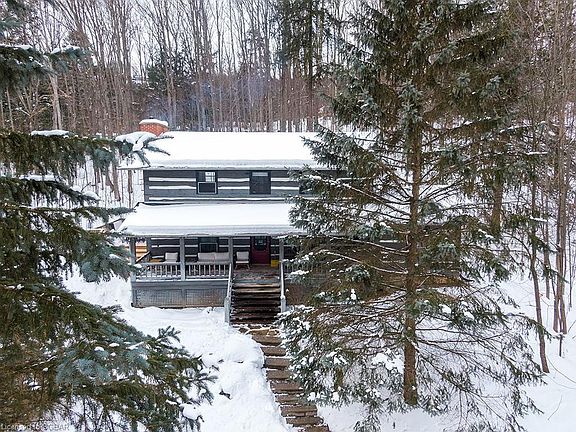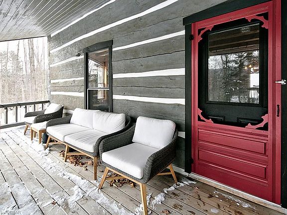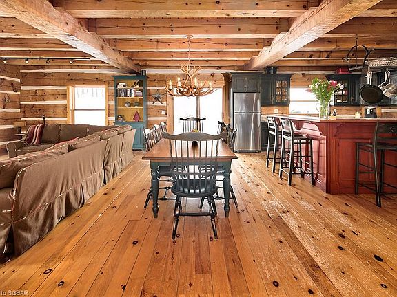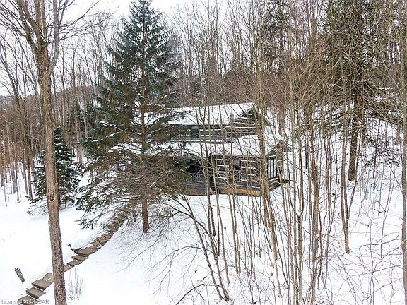 Is there anything better than an Authentic Log ski chalet? This custom built dovetail log cabin is everything you ever wanted or needed to complete the ultimate Beaver Valley experience. Located at the end of Angus Ave, it's quiet and peaceful and backs onto the Bruce Trail and Au Chute chairlift. A true Ski In-Ski Out location that will simplify and enhance your time at Beaver. The chalet is on 3 levels with large boot room entry with flagstone flooring and 2pc bath. It has a great layout that flows easily and makes entertaining a breeze. The great room is magnificent with wood burning fireplace with stone front, pine wide board floors and T&G wood accents. Nice and bright with walk out to deck and hot tub. The construction is beautiful with massive pine square logs that command attention and dominate the great room. An original Scott Hay Log Home. The kitchen is open to the dining and living room with granite counters, SS appliances, wine cooler and has abundant counter space and cupboards. Upper level has 3 bedrooms, master with double closets and ensuite bath with jetted tub. Two guest bedrooms share a 3pc bath with shower and the laundry is conveniently located on this level. The lower level is the perfect place for children & teens to gather with 4X8 slate pool table, family room and additional sleeping rooms and full 4th bathroom. A rare find at the Bottom of BVSC.