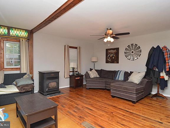 Come see this adorable Oley Valley School District starter home or investment property, it is move-in ready with awesome fundamentals. Come into the huge living room with hardwood floors, tons of natural light with a brand new bay window and a pellet stove, then an updated 20 handle eat-in kitchen with tile floors, all appliances are staying including the washer and dryer on the main floor laundry/mudrrom. Finishing the main level is an updated bathroom and a master bedroom with a ceiling fan. The upper level has another bedroom and a loft area that could be an office or play area and some storage. Lower level has a propane furnace installed in 2018, newer hot water heater with new steel door and more storage. There is a lovely rear yard for entertaining along with a shed with electric and the new roof makes this cozy home a great buy! Home also has a brand new roof and central air and is just waiting for a new Owner!