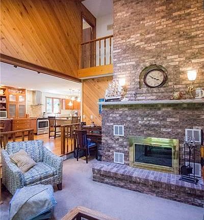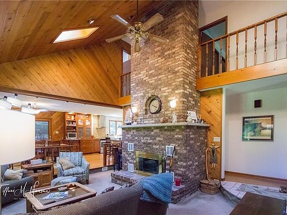 Pristine 3/2 in parklike setting. Escape to this immaculate home featuring open floor, sunken living room with dramatic 2 story brick fireplace and second floor balcony. Beautiful woodwork throughout. Well-planned recent quality kitchen renovation. Enjoy outdoor living on the covered wrap porch, hot tub, pool, deck and gazebo in the private back yard. The lower level finished family room is cool in the summer and cozy in the winter with the fireplace including a guest room and loads of storage. Oversized 2 car garage with additional utility garage door for easy lawn care equipment storage.