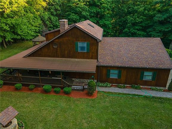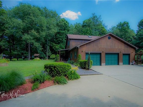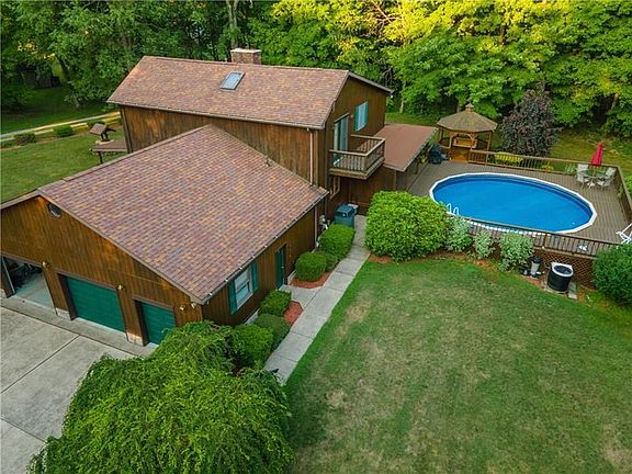 Pristine 3/2 in parklike setting. Escape to this immaculate home featuring open floor, sunken living room with dramatic 2 story brick fireplace and second floor balcony. Beautiful woodwork throughout. Well-planned recent quality kitchen renovation. Enjoy outdoor living on the covered wrap porch, hot tub, pool, deck and gazebo in the private back yard. The lower level finished family room is cool in the summer and cozy in the winter with the fireplace including a guest room and loads of storage. Oversized 2 car garage with additional utility garage door for easy lawn care equipment storage.