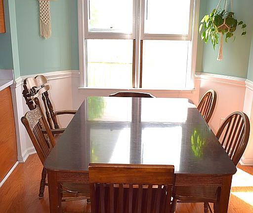 - RoomKitchenFeatures: Pantry, Eat-in Kitchen, Counter Tops-Formica, Cabinets-Natural, Floors-Hardwood