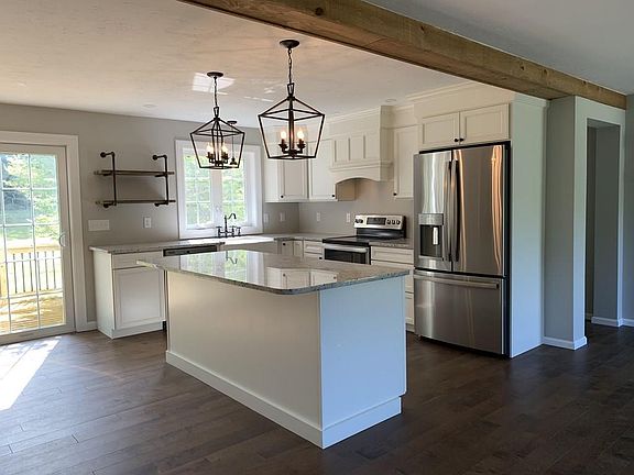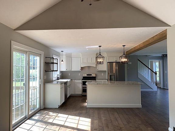 - Kit Dscrp: Flooring - Hardwood, Deck - Exterior, Kitchen Island, Stainless Steel Appliances, Recessed Lighting, Ceiling - Beamed, Remodeled, Slider