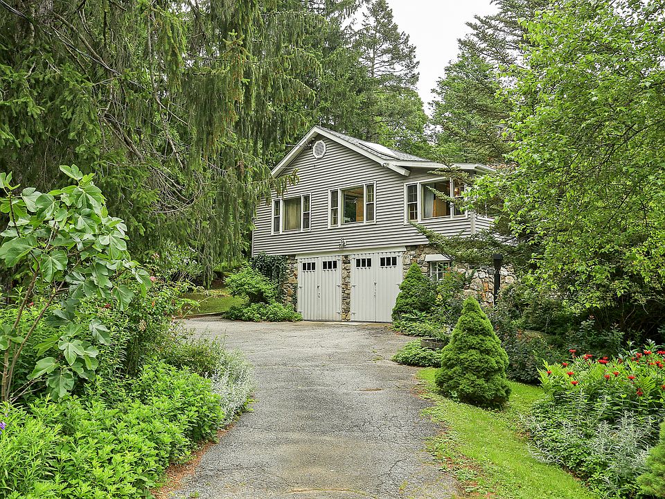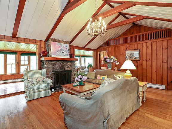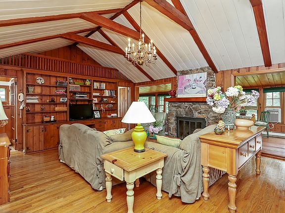 An oasis in the country. You can feel nature at its best. A circular driveway introduces this wonderful hideaway with a private and serene setting for a relaxing four season retreat. Nicely appointed & sited perfectly on roughly 3 spectacular acres that welcomes entertaining of guests and family. This charming, unique country home is nestled into the gently rolling landscape and is a lovely one of a kind custom home which projects a warm and comfortable feeling. Spectacular property stunningly landscaped with flowering trees, shrubs and rock outcroppings. A creation reminiscent of an adult fairy garden which the avid gardener will love and find plenty of flowers beds to tend. Open and lovely sun filled living room with gleaming hardwood floors. A family room of unusual proportion, utility and charm with walls of windows. Authentic stone fireplace.