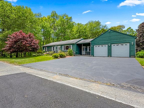 Sweet neighborhood and preferred end of the street location is perfect for this 3 BR 2 BA ranch style home! Enter through the Sun Room to the main living area featuring a large Living Room, Dining Room with sliders to the Deck and a fully applianced eat-in Kitchen. The Bedroom area includes a Primary Bedroom with Full Bath and 2 additional Bedrooms with a 2nd full Bath. Downstairs, a generously sized Bonus Room offers flexibility. The unfinished portion of the Basement provides ample storage with convenient built in shelves. This home is truely designed for enjoyment, boasting an oversized two car garage with finished interior, a working hot tub, sunny deck and a great yard surrounding the house. Also there is Central Air with recently updated condenser, town water, newer garage door openers and numerous ceiling fans, all with easy highway access and ready for the next owners to love!