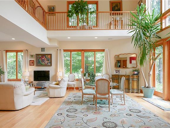 Custom designed Villa built to capture the views of Narragansett Bay and the Newport bridge! Open floor plan with atrium to the second level. You're going to love cooking and entertaining from the beautiful custom kitchen with large pantry. Summer cookouts on the back patio just off dining. First floor office lends itself to option of a first floor bedroom. Half bath with laundry. Step out onto your second level deck from atrium or private access from nicely proportioned bedroom. With two more bedrooms and a full bathroom on the second level there is lots of living space. Come see this beautiful house and turn it into your home! Located only a very short distance to all village amenities.