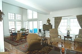 Exceptional waterfront Townhouse on three levels with custom finish work. Vaulted living room with deck overlooking the water, library with built-in bookcases and fireplace, large bedrooms, all with private baths. Dock rights and mooring possibilities.