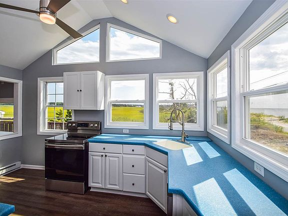 Remarkable renovation of water front home in Reeds Beach. New windows, doors, baseboard heat, central air. Kitchen with new SS appliances, Corian counters, stackable washer + dryer. Living Room, sun room/dining 19x12 with breakfast bar. Storage shed, fenced rear yard, off street parking. Great rental income or 2nd home. Two bedrooms with carpet and great large loft area for additional sleeping space. Agent is related to sellers. New septic system will be installed before closing