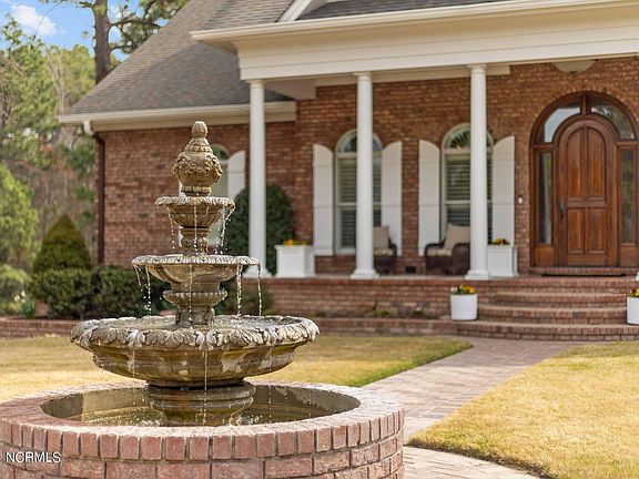 The expansive rear porch is perfect for hosting events and offers complete privacy and serenity. Additionally, the side and back lawn feature a putting green, making it a great investment for golf enthusiasts. This exquisite home offers luxurious living in a peaceful and serene setting.