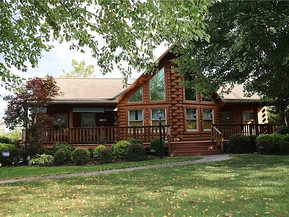 Custom built log home. Impeccably maintained. 2-car integral garage plus 2-car detached garage. Two 4-seasons rooms, one on each level. Upper level loft overlooks open living room. Lower level 4-seasons room enclosed in 2016. 4-seasons rooms have their own heating and cooling. Both fireplaces converted to electric but gas still available. Finished walk-out basement with abundant storage, family room, game room, laundry and full bath. Exterior sprinkler system with 20+ sprinkler heads, mature landscaping, logs proactively stained and sealed. Gorgeous setting on private road.