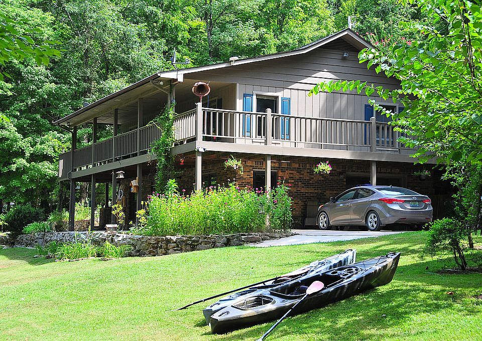 Waterfront property located 12 miles from Huntsville off Hwy 72E Lot is approx 1.6 acres, 145 Ft. frontage on the Flint River. Built in 1995, 2 story house, approx. 2460 sq. ft. Lower level has large den, full bath, utility room and one additional room. Upper level has Large Living room, dining room, kitchen. 2 Bedrooms and Full bath Covered porch on front and back with wrap around deck. Detached two story building with garage and extra storage. Detached three car carport Well house with new RainSoft filtration system Central Heat and air conditioning Schools: Central Elementary, Madison County Middle and High School