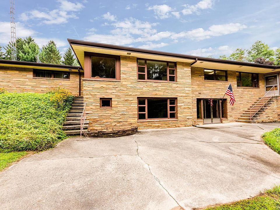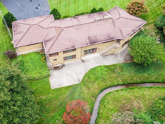 Mid-Century Modern in the Country! Come with your imagination and turn this home into your dream! You will enjoy this peaceful country setting! Situated on 2.72 acres, Blue Creek runs through the backyard! Creek banks have been reinforced with concrete to control the banks for years to come. Throughout the home you will enjoy plentiful natural light from many large windows. Main level features 2 bdrms including the master. Brick focal fireplace in the living & dining room. On the lower level you will find an additional bedroom, as well as a recently updated kitchenette and full bathroom. Watch the seasons change from the lower level walkout onto a patio where you are able to enjoy nature and watch the Creek flow. This is a truly unique property that you need to see to appreciate