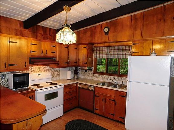 Located in Bullskin Twp., this ranch style home has 3 bedrooms, 1 full bath and 1 half bath. 120 Big Springs Road is situated in the Connellsville Area School District and Bear Rocks neighborhood. The sale of this home includes refrigerator, dish washer, disposal, electric stove, and washer/dryer. This home also has detached garage with 3 spaces, 1 fireplaces, hard wood, wall to wall carpet floors, oil, forced air heating. Adorable original Bear Rocks cabin with so much charm! Living room with built-in seating and stone fireplace. Gorgeous wormy walnut paneling. Over sized 2 car garage and an attached carport. Screened porch and covered porch. Walking distance to the club house. Beautiful wooded lot.