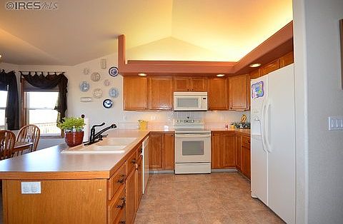 Wonderful views to the west from this Mad Russian Ranch plan! 3 bed/3 bath, master with walk in closet, 5 piece bath and sliding doors out to covered deck off back of home. Main floor laundry, formal dining or office up front. Golf Course community with NO HOA's, RV parking, beautifully landscaped with sprinkler system in both front and back. Oversized 3 car garage, measures 25 1/2 x 33 1/2,epoxy floor finish w/floor to floor ceiling cabinets. 2 year old fence, roof replaced in 2007.