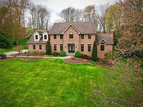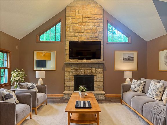 Comfort meets elegance in this impeccably maintained Carl Leicher Constructed custom brick home. Seated atop 1 full acre is this distinctive 4 bedroom, 3 full and 2 1/2 bath home with a 4 stall garage. An immaculate kitchen with cherry cabinets, double oven and granite countertops with bar seating flows into a secondary dining space and spacious living room with vaulted ceiling and stunning floor to ceiling stone fireplace. Also contained on the main level are the formal dining room, office with gorgeous built-ins, half bath and laundry. Upstairs are 3 suitably sized bedrooms, one with en suite bathroom, a full bath and an expansive primary suite. The walk-out lower level holds an impressive finished family room with wet bar, gas fireplace, half bath, plus an additional unfinished portion. Enjoy the beautiful backyard, shed and patio with outdoor fireplace for cozy evenings and entertaining. The patio has a foundation so an addition or sunroom could be built.