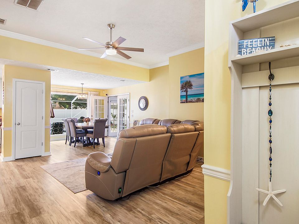 Discover your dream Panama City Beach retreat in this stunning 3-bedroom, 2-bath home with a sparkling pool and sunroom, nestled in the exclusive Summer Breeze community on a serene cul-de-sac. Move-in ready, this meticulously updated gem lets you embrace the coastal lifestyle from day one. Step into an open-concept living space featuring sleek granite countertops in the modern kitchen, perfect for hosting friends or enjoying quiet evenings. The split-bedroom layout ensures privacy, with a luxurious master suite boasting a cozy sitting area overlooking the pool—your personal oasis. The expansive enclosed pool area is an entertainer's paradise, ideal for lively gatherings or unwinding after a sun-soaked day at the beach. No detail has been overlooked: fresh interior paint, stylish new flooring, modern light fixtures, and vibrant landscaping with your very own orange and lime trees plus an outdoor shower for rinsing off sandy toes. Energy-efficient upgrades like extra attic insulation keep utility bills low, while reinforced attic flooring and custom shelving provide ample storage. This home has it all—modern comforts, prime location, and a lifestyle that screams relaxation and fun. Don't miss your chance to own this coastal masterpiece. Just blocks from the beach in a Golf Cart friendly neighborhood. All Furnishings and street Legal Golf Cart are negotiable. Schedule a showing today and start living the beach life you've always dreamed of!