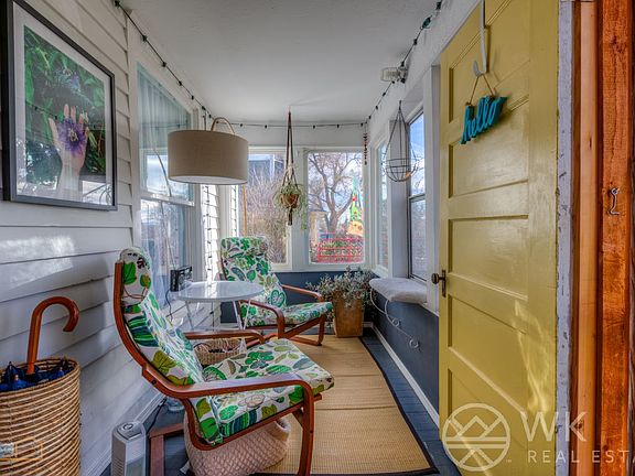 1910 OLD TOWN Longmont COTTAGE CHARMER! This home features a gourmet Kitchen with black granite countertops, a deep double sink with a swivel and extendable faucet/nozzle, a gas range/oven, pot racks and under cabinet lights, and a new black stainless steel refrigerator. The inviting open floor plan has unique sliding "barn" doors for the bedrooms. The enclosed front porch welcomes you home, and the huge covered back patio has a tin roof which reaches all the way to the garage so you can carry your groceries to the house out of the weather. The entire lot is fenced and has sturdy ranch gates. The oversized detached garage has ample storage shelving and a work shop. You can easily heat the entire home with the wood stove in the living room, or just set the thermostat on the forced air furnace and relax. Get into old town for this amazing price while you still can!
