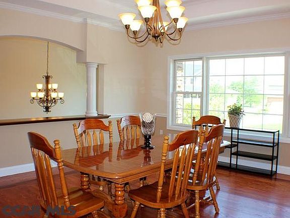 Uniquely designed 4 bedroom, 3 bath home with lovely views of the mountains, offering a private backyard with large patio connecting to master bedroom with French doors. This home boasts 9' ceilings ,marble entryway with an extra wide staircase and hardwoods throughout. The dining room with a tray ceiling and inlaid hardwood flooring, a chef's dream for a kitchen including an island, large pantry and lots of countertop space. Master bedroom has a tray ceiling and is large enough for a sitting area to relax and en-suite features a whirlpool tub and separate shower with the rain head attachment. A concrete patio extends almost the whole length of the home for your entertaining needs. Don't forget about the 4+ car garage attached. Located on a Cul De Sac and in the State College School District and easy commute to downtown and PSU campus.