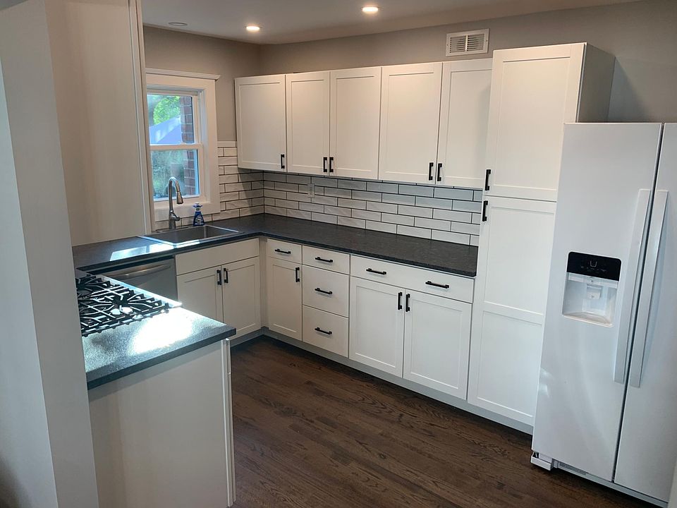 Beautifully renovated two level apartment in 2 unit rental in the heart of eclectic Red Bank! Three sunny bedrooms on second floor. New bathrooms and kitchen boasting granite/marble countertops, separate bath and shower and double vanity in master bathroom, newly finished hardwood floors. Beautiful patio off large bright sunroom in backyard. Laundry room with new appliances. Parking in rear. New landscaping to come. Central air conditioning. Walk to restaurants, shops, and the beautiful Navesink River! Renter responsible for gas, electric, and water. No smoking permitted.